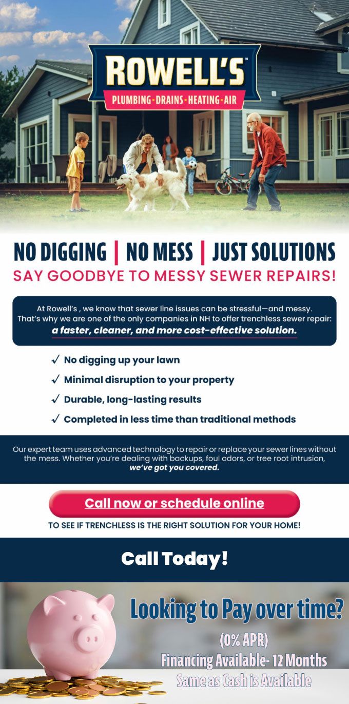 At Rowell's, we know that sewer line issues can be stressful—and messy. That's why we are one of the only companies in NH to offer trenchless sewer repair: a faster, cleaner, and more cost-effective solution.