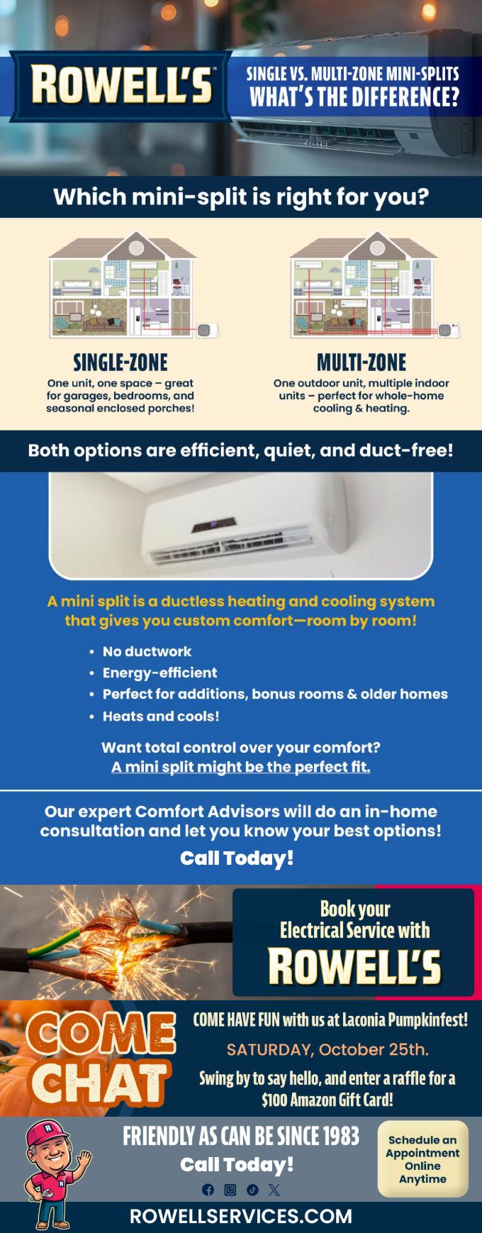"Friendly As Can Be Since 1983!" When you need help with your plumbing, drains, heating, cooling or electrical in Rumney, you can always rely on Rowell's Services! Call us now or book online!